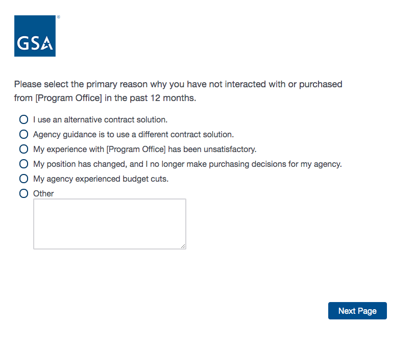 Display if “When compiling your orders, which of the following sources do you rely on most?” = GSA Global Supply electronic catalog
