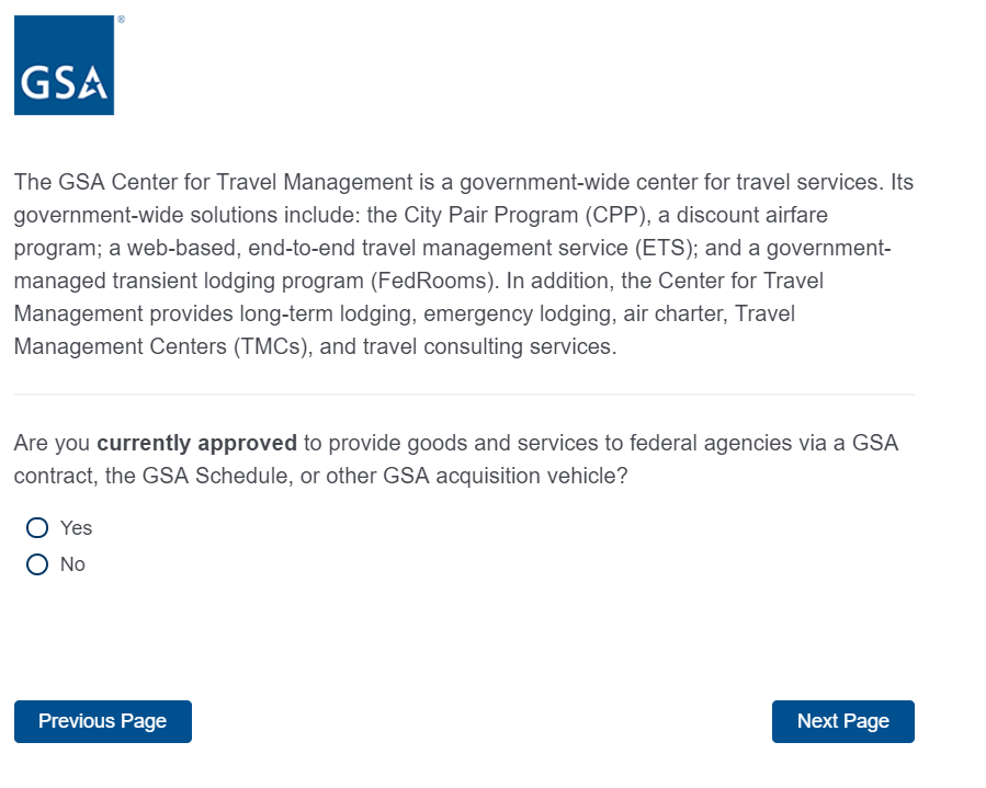 If Program Office = GSA Center for Travel Management, skip to Screen 10.