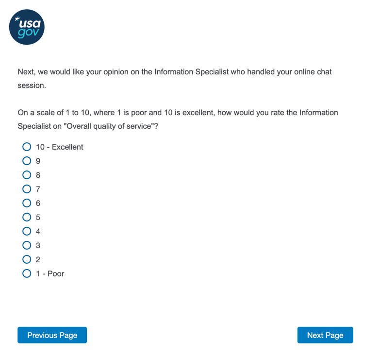 Voluntary Customer Satisfaction Survey for Customers of the USA.gov Web Chat Government Information Service Who Speak to an Information Specialist