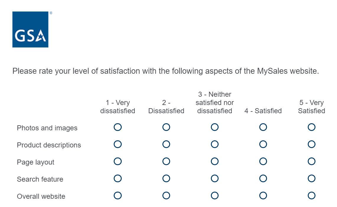 Screenshots of GSA PPM Survey for GSAXcess and MySales
