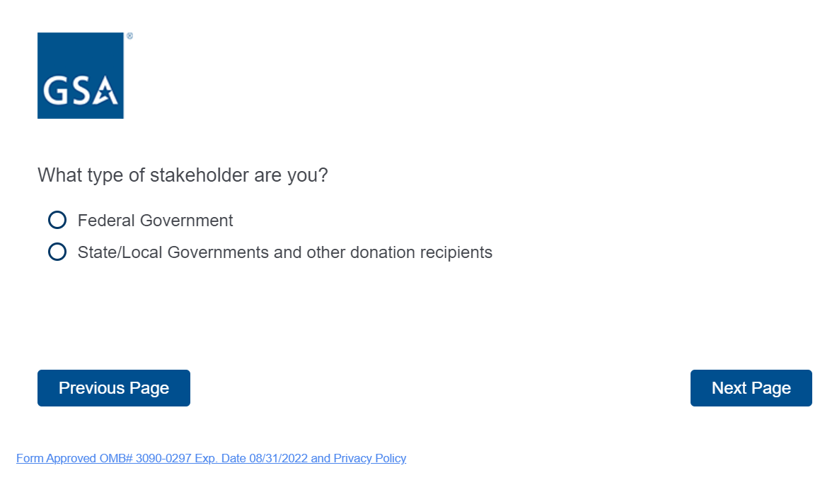 The respondent can select one or both websites above. If they select, GSAXcess, the following questions will appear.