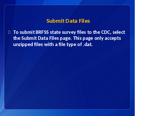 The BRFSS questionnaire was developed in collaboration with CDC and public health departments in each of the states, the District of Columbia, and participating territories. Data derived from the questionnaire provide health departments, public health officials, and policy makers with behavioral and health status information that, when combined with mortality and morbidity statistics, guide the development of health-related policies and priorities as well as help decision makers address and assess strategies to promote good health. A finalized version of the questionnaire is sent to the states each year. CDC also provides computer-assisted telephone interviewing (CATI) programming to states, but they may opt to use their own CATI programming software using the final version of the BRFSS questionnaire as a guide. States which develop their own programming systems are required to test it accurately against the CDC provided programming. States may not change the skip patterns or wording of questions in the questionnaire but are free to create state-added questions that can be customized to states’ individual needs (see below). In some instances, states may insert state-added questions into the questionnaire--with permission from CDC--when such questions fit into the context of extant topics/sections and do not impede the flow of the interview. Requests should be submitted to the state project officer or the survey methodologist on the Survey Operations Team.