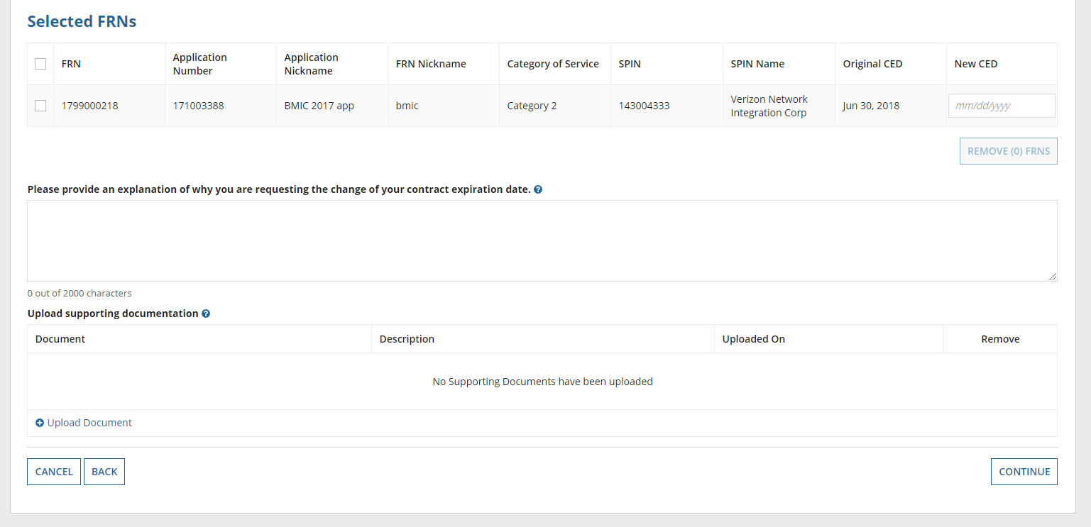respondents use the FCC Form 500 to change the contract expiration