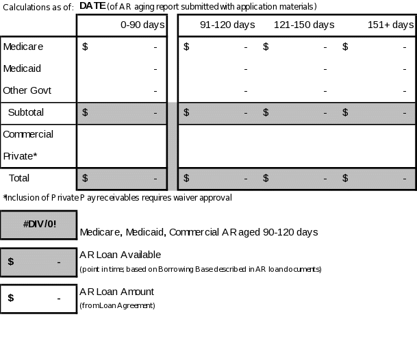 Assuming the $ maximum AR loan limit, an annual interest rate of %, and that the entire amount is outstanding for the year, the maximum annual interest expense would be $ . In addition to the interest, the other associated fees are the fees <<list types of fees>>, that total $ per year for the same assumed balance. An analysis of the operator’s 12 month trailing financial statement (Month 20XX – Month 20XX) is below: