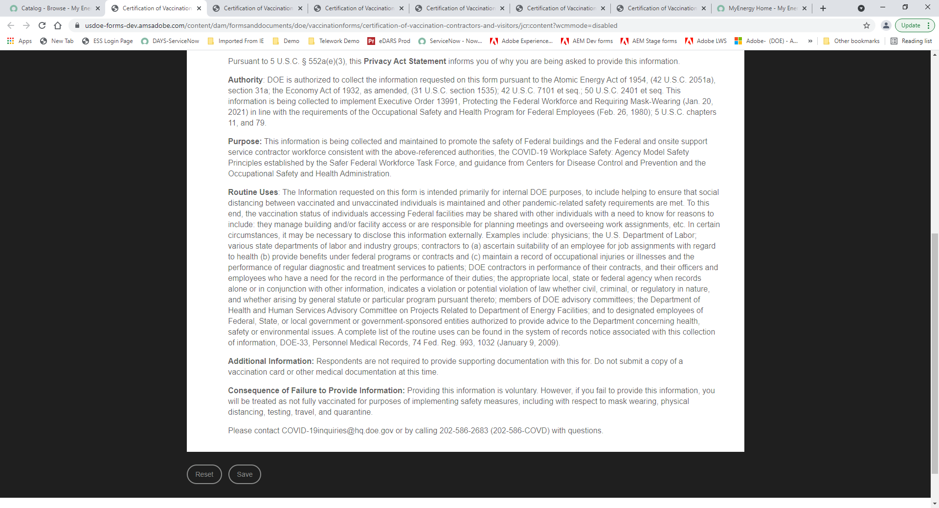 of Vaccination – DOE Onsite Support Service Contractor