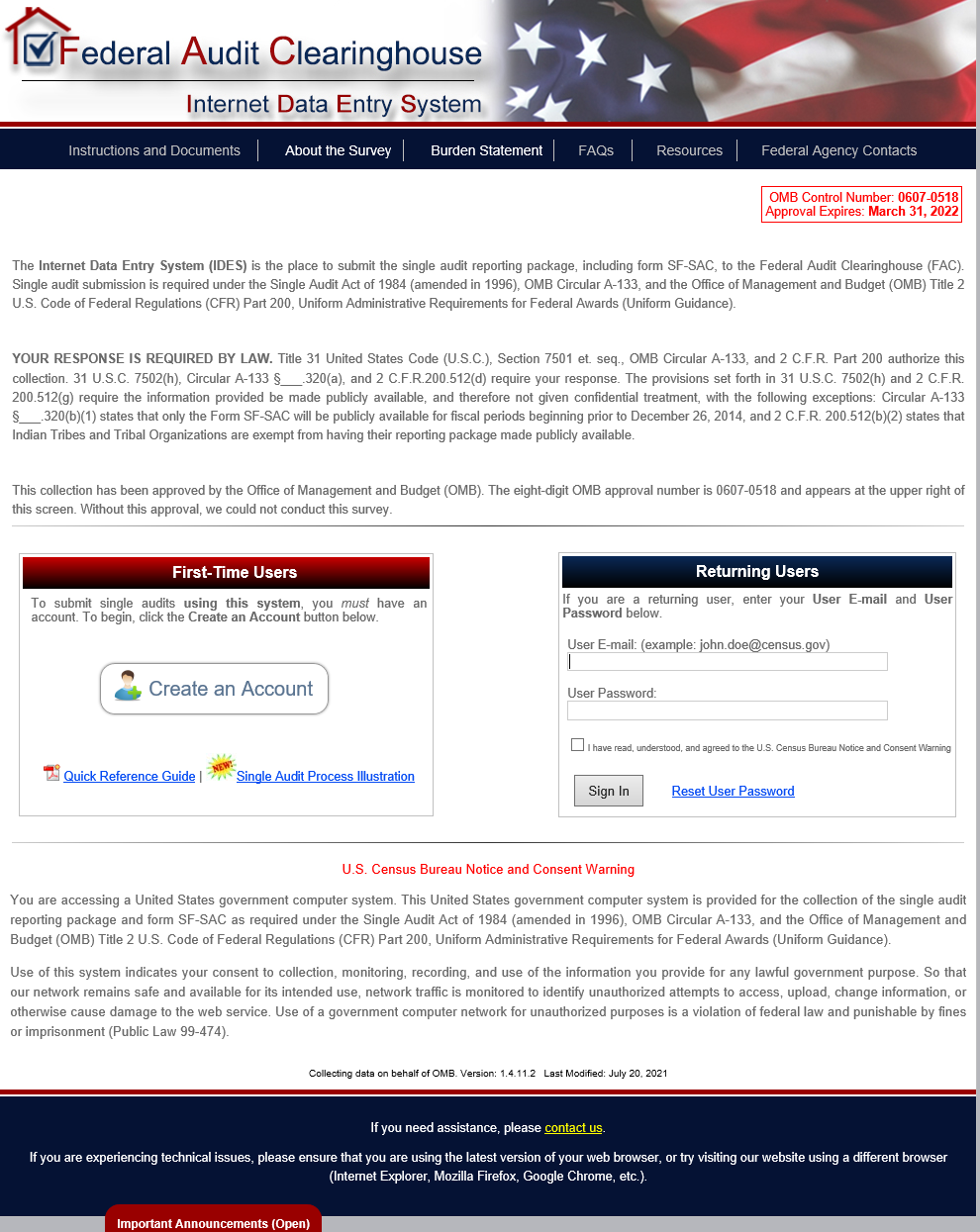 Data Collection Form for Reporting on Audits of States, Local Governments, Indian Tribes, Institutions of Higher Education, and Nonprofit Organizations