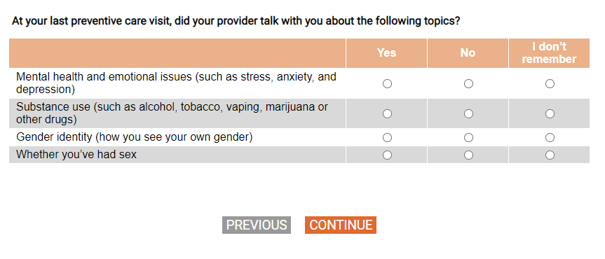 Teen Survey Screenshots