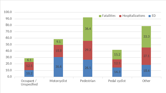 Values are shown as percentages Occupant / Unspecified Motorcyclist Pedestrian Pedal cyclist Other