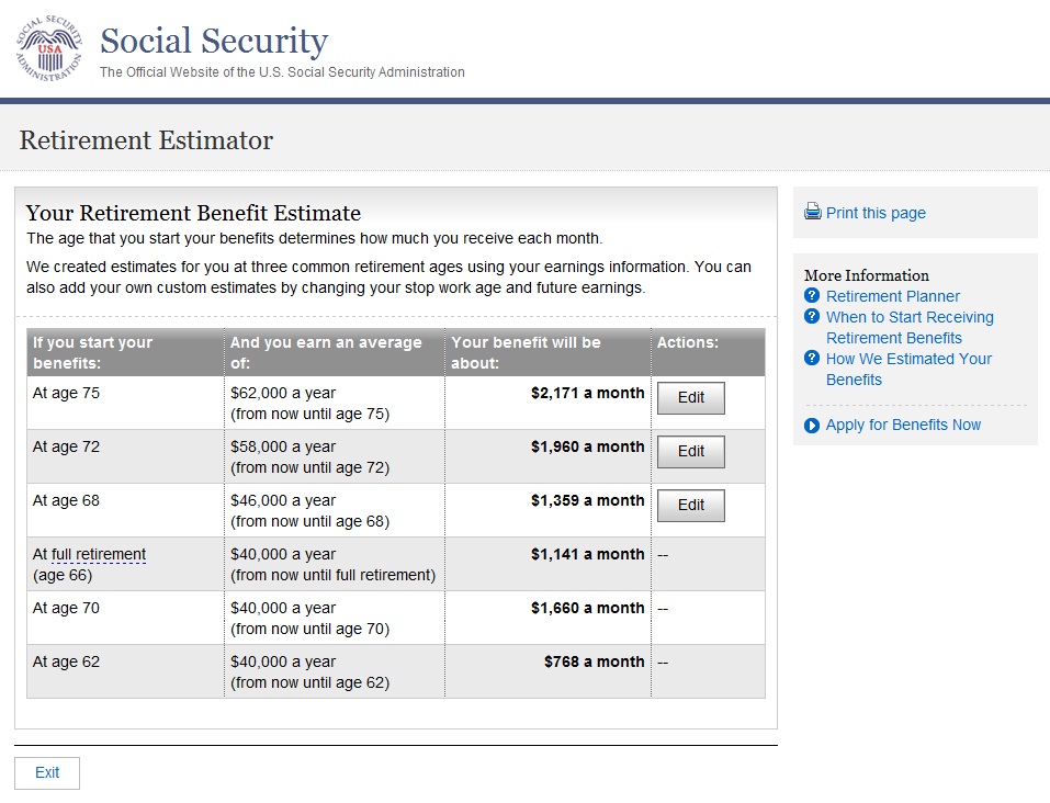 RETIREMENT ESTIMATOR SCREEN SHOTS 8 24 13