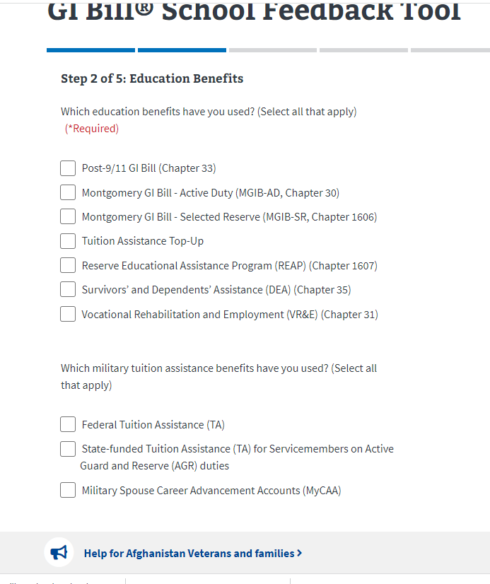 GI BILL SCHOOL FEEDBACK TOOL SCREENSHOTS