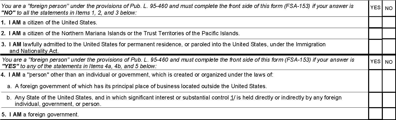 FSA-153 Agricultural Foreign Investment Disclosure Act