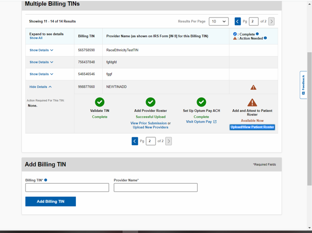 Add a new Billing TIN/ New Billing TIN with 9 digits unique one with Provide name.