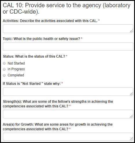 The purpose of this document is to list all the data elements collected online through the Fellowship Management System (FMS). The FMS activity tracking module is a streamlined mechanism for Centers for Disease Control and Prevention (CDC) fellow, program associates and host site supervisors to submit information online and track statuses of fellowship progression (e.g., CALs, competencies). The FMS is a robust flexible framework and the FMS Activity Tracking Module is tailored successfully for various CDC fellowships: