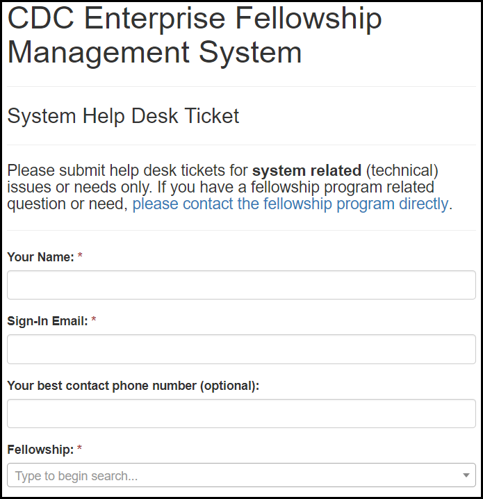 Figure 3-a. eFMS System Help Desk Ticket Fields