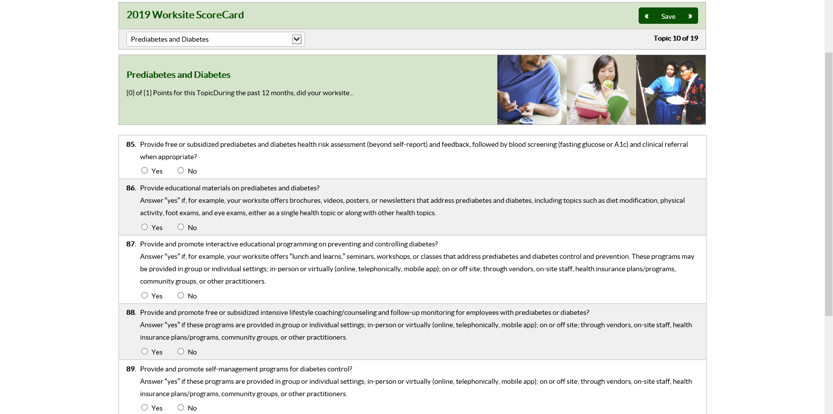 All questions should be answered consistently with your worksite practices and programs that are current or that have been in place within the last 12 months.
