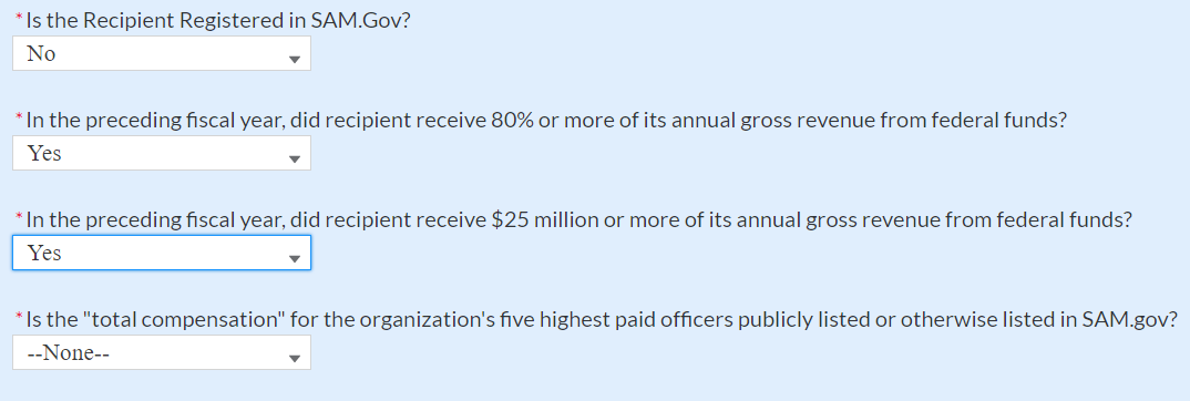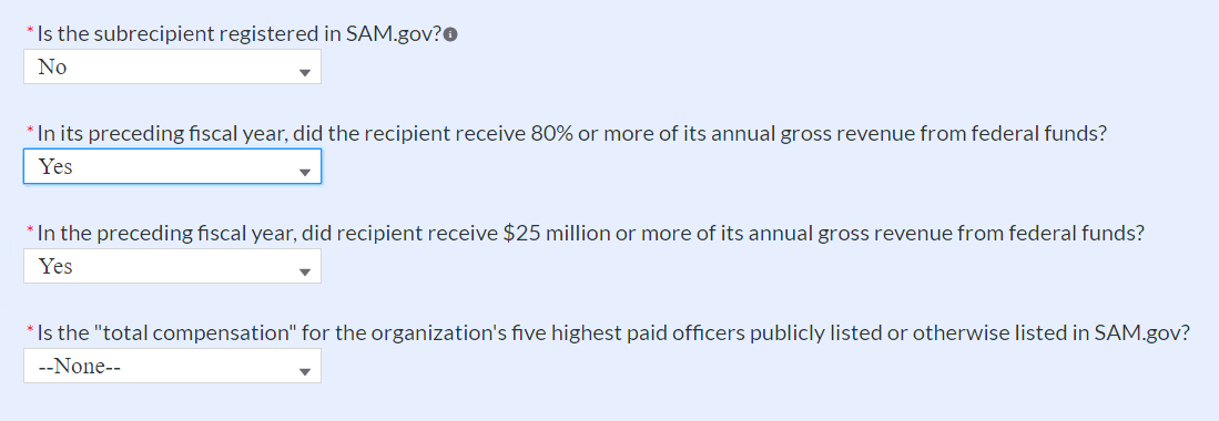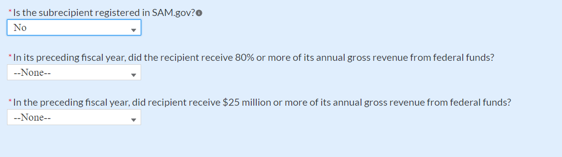 Figure 35 Additional SAM.gov questions for Subrecipients 31