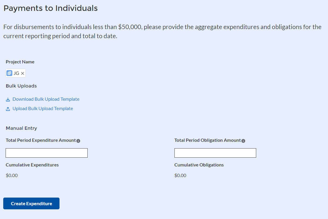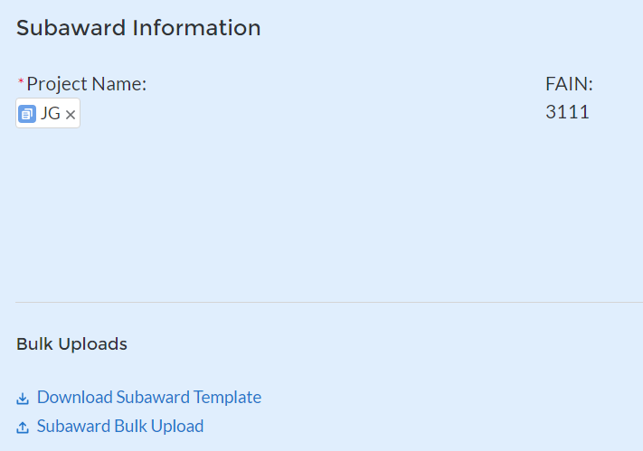 Recipients can use the bulk upload function for providing required information for the modules listed here: