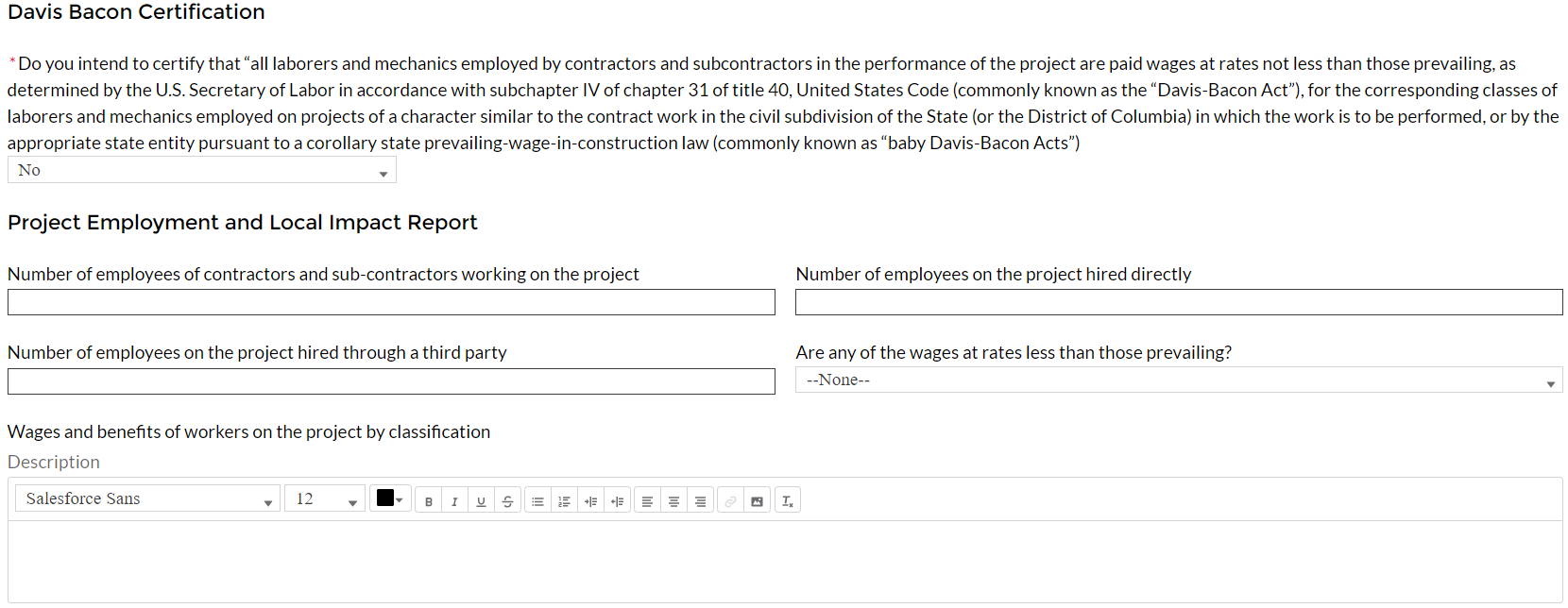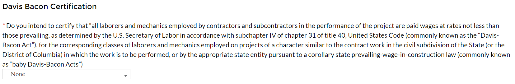 Figure 28 Additional Questions if Response to Davis Bacon Certification is "No" 25