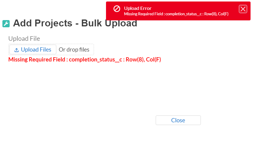 Figure 6- Invalid Bulk Upload Error 6