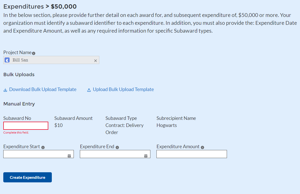 Project and Expenditure Bulk Upload Templates