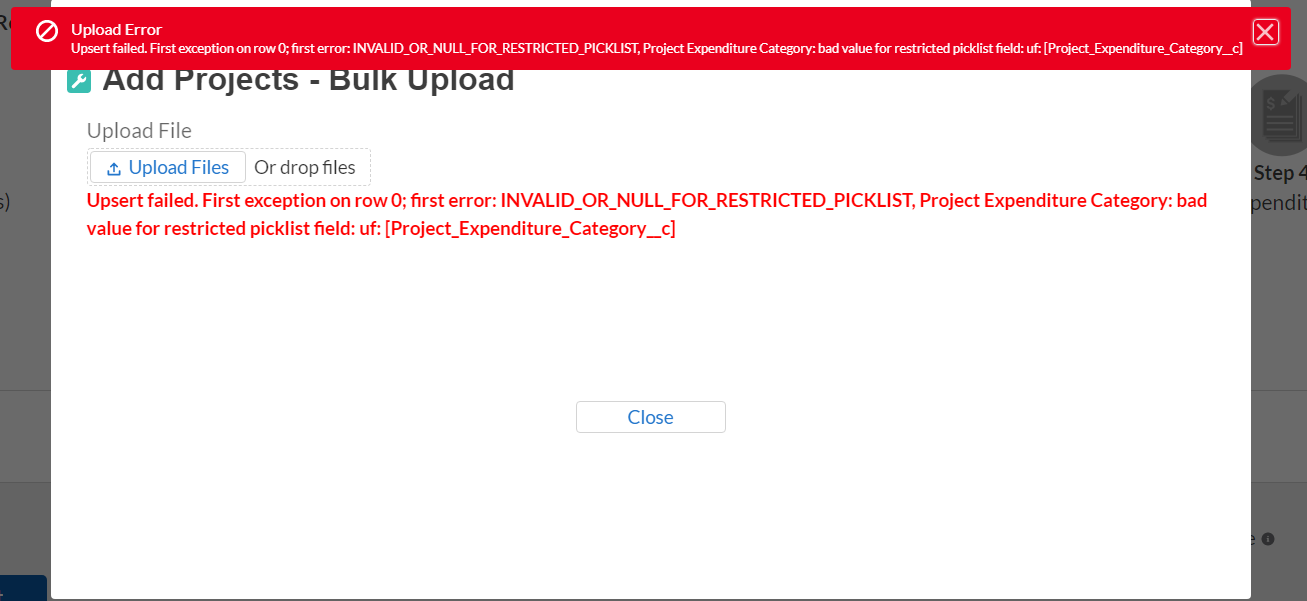 Figure 5- Unsuccessful Bulk Upload 5