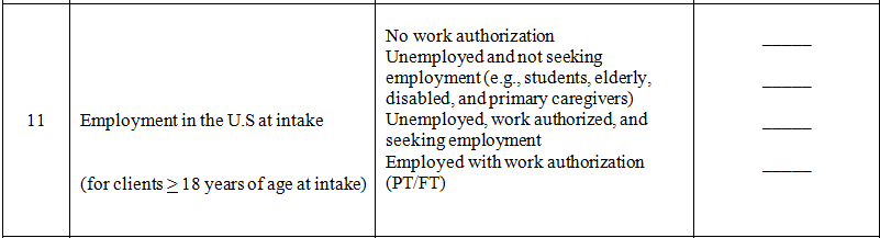 11. EMPLOYMENT IN THE U.S. AT INTAKE 9