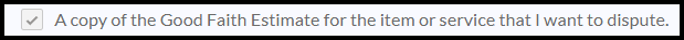 • A copy of the Good Faith Estimate for the item or service you want to dispute
