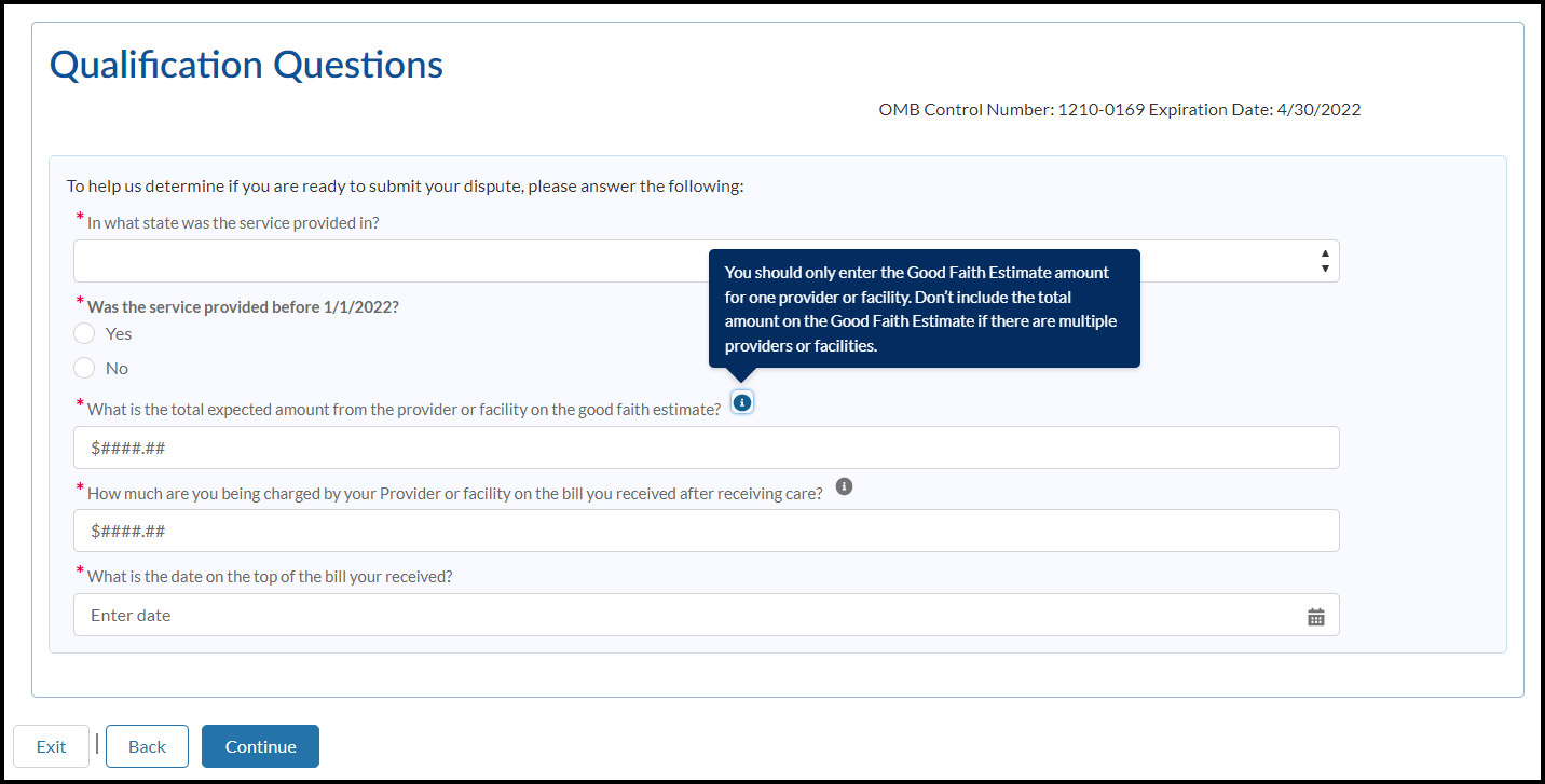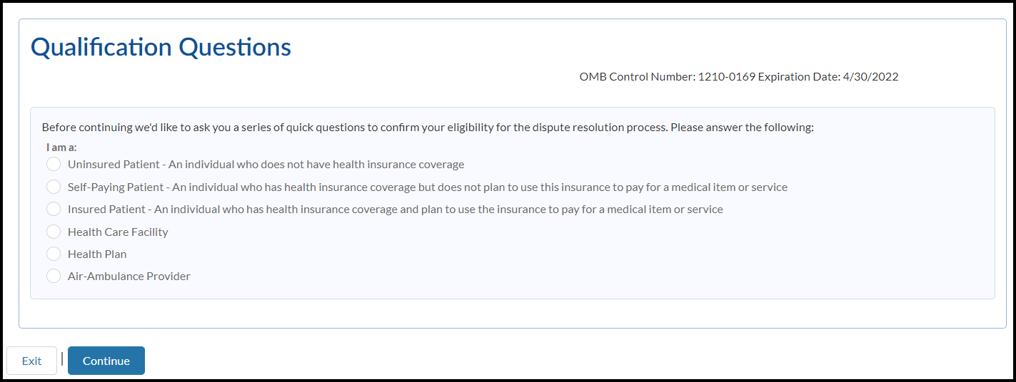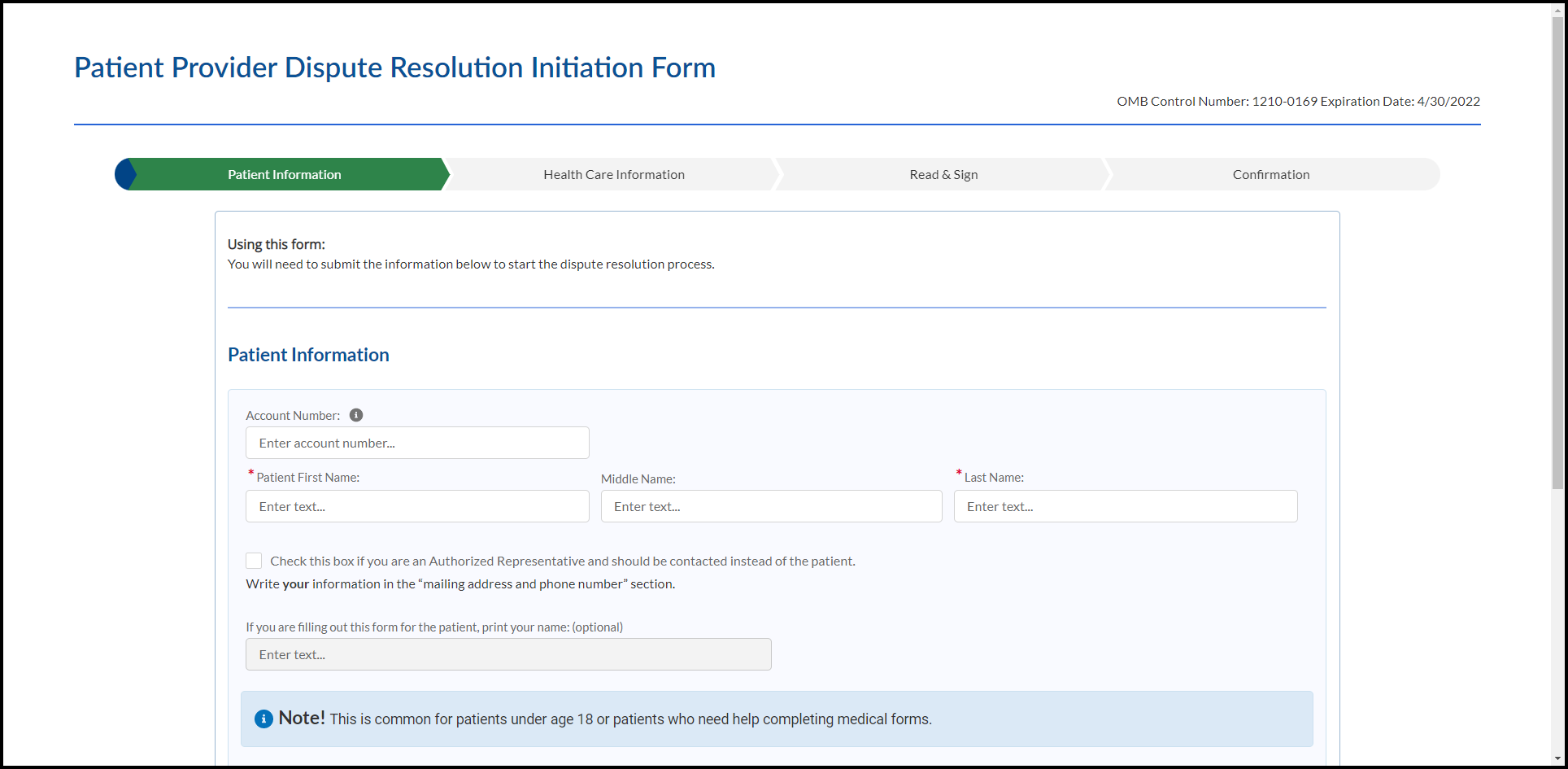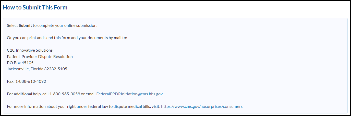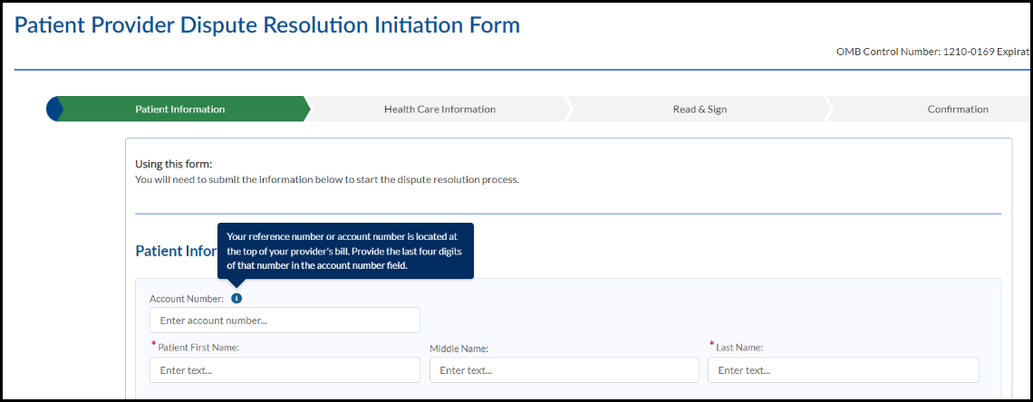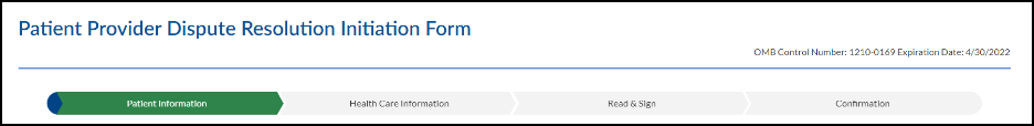 Welcome to the Patient Provider Dispute Resolution Initiation Form