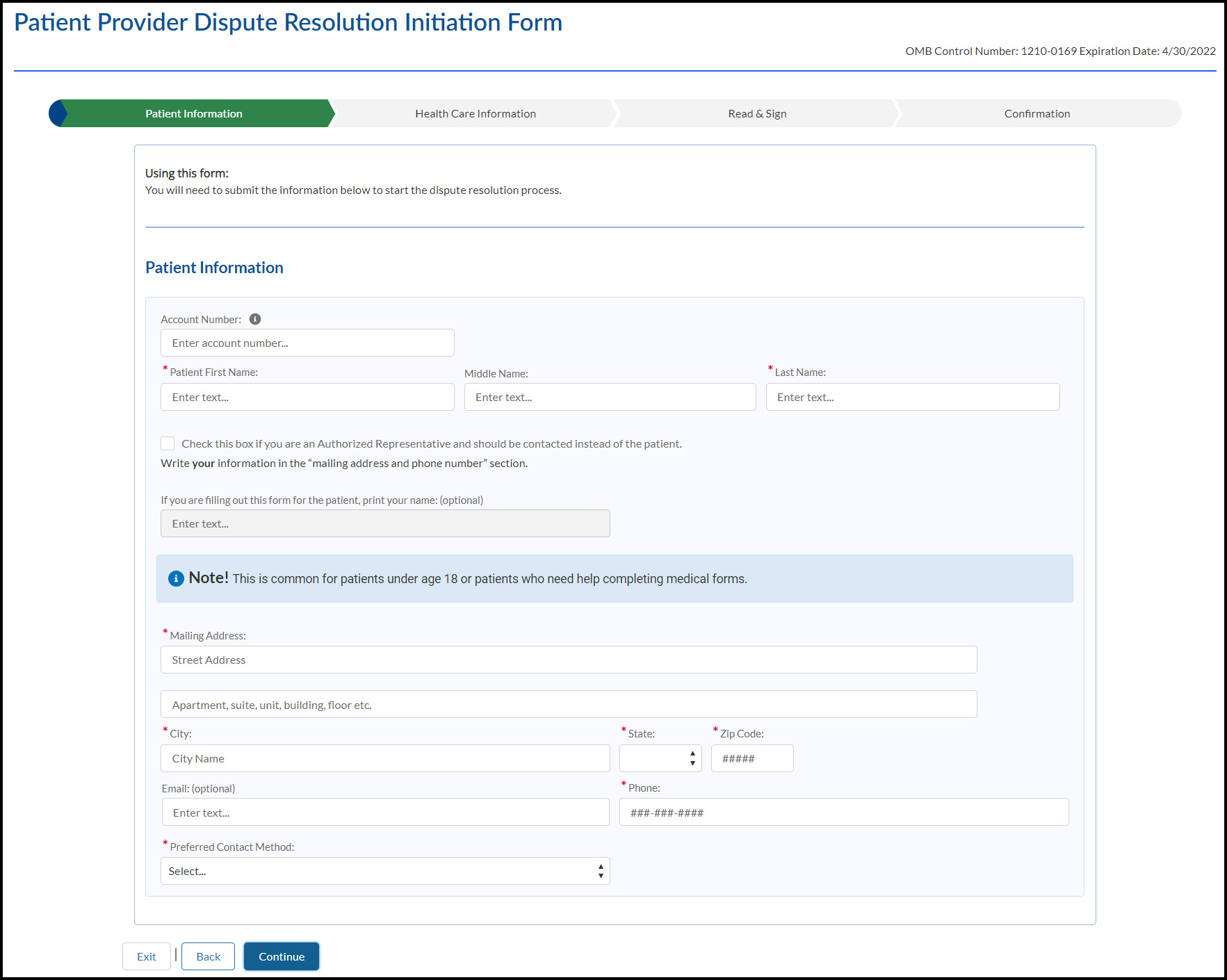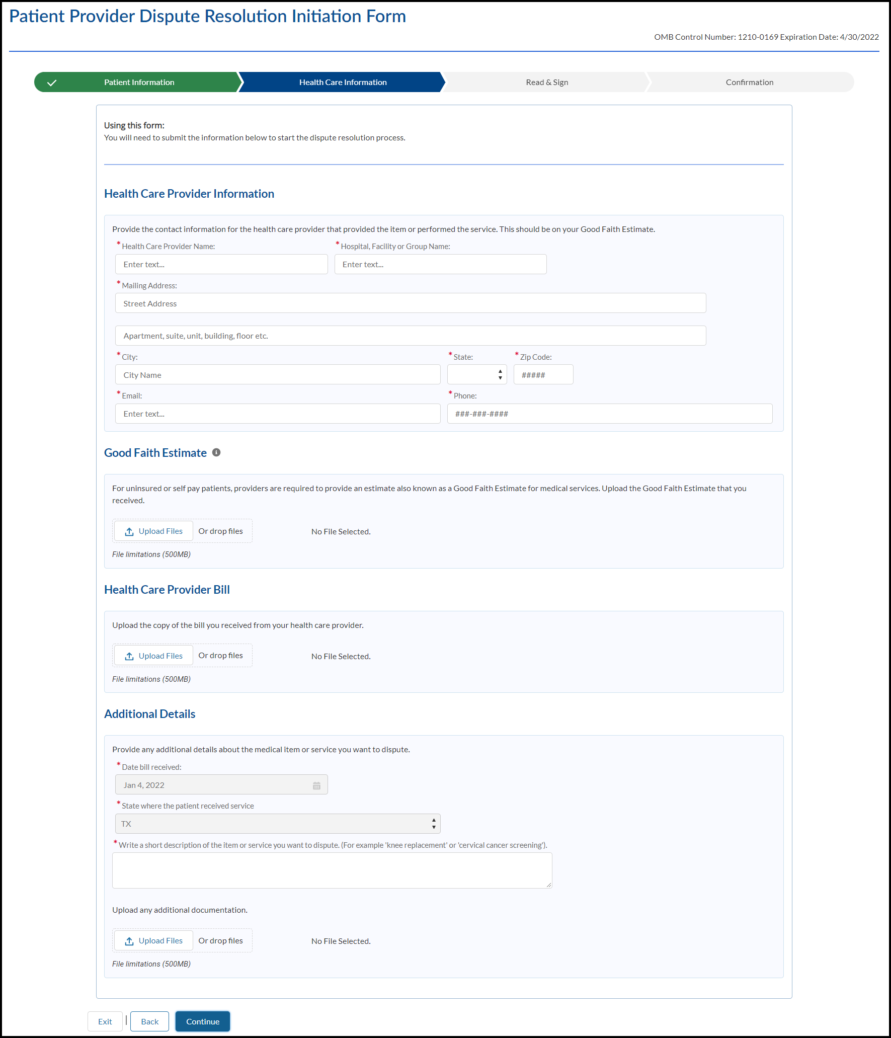 Patient Provider Dispute Resolution Initiation Form: