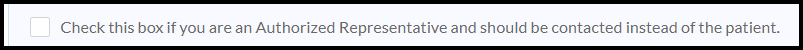 • Check this box if you are an Authorized Representative and should be contacted instead of the patient. Write your information in the “mailing address and phone number” section.