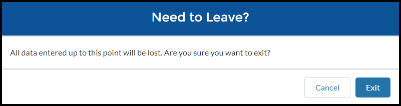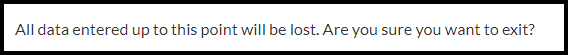 All data entered up to this point will be lost. Are you sure you want to exit?