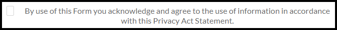 • By use of this Form you acknowledge and agree to the use of information in accordance with this Privacy Act Statement.