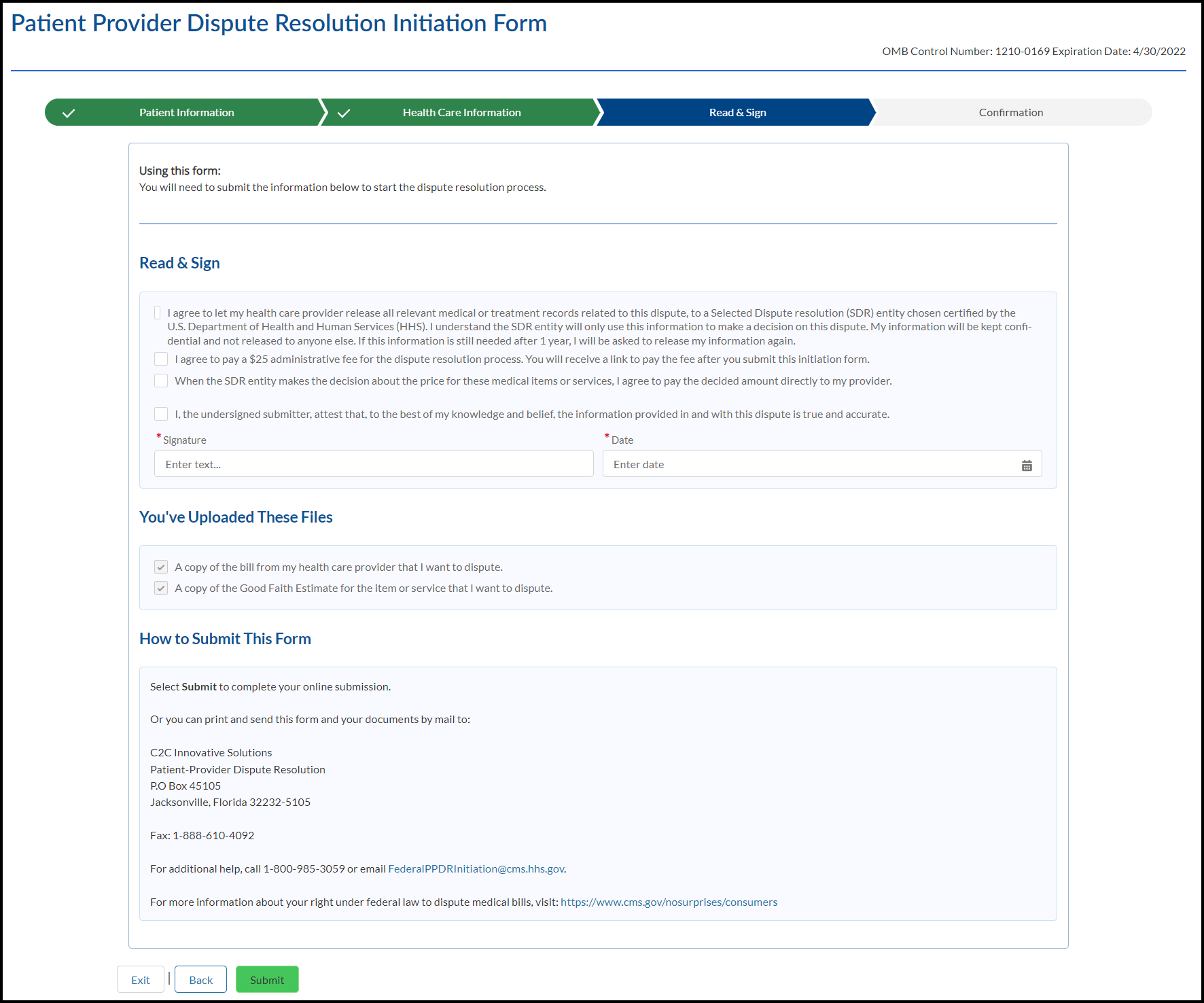 Online Patient-Provider Dispute Resolution Initiation Form