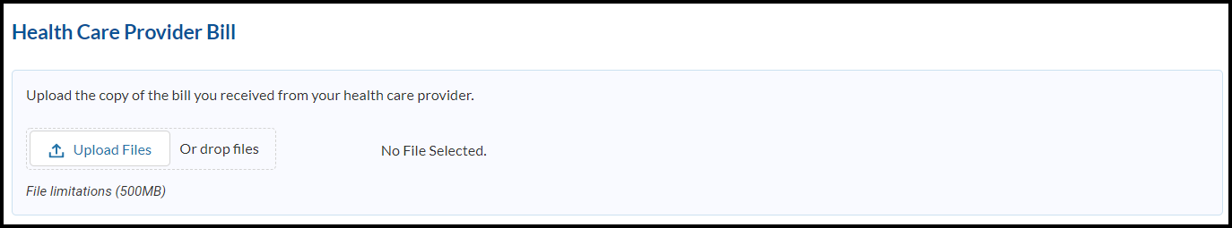 Upload the copy of the bill you received from your health care provider.