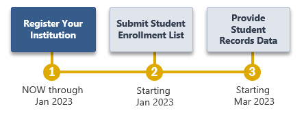 First, you will register your institution for NPSAS:24. When you register, you will designate staff who will submit data for NPSAS:24. You may need to designate staff from multiple departments at your institution to provide general demographic, enrollment, budget, and financial aid data. Each person you designate will receive their own credentials for logging into the PDP website. You will also provide important background information about your institution, including your term structure, and set the due date for providing your student enrollment list. The due date for providing your list will vary based on your institution’s term structure. |
