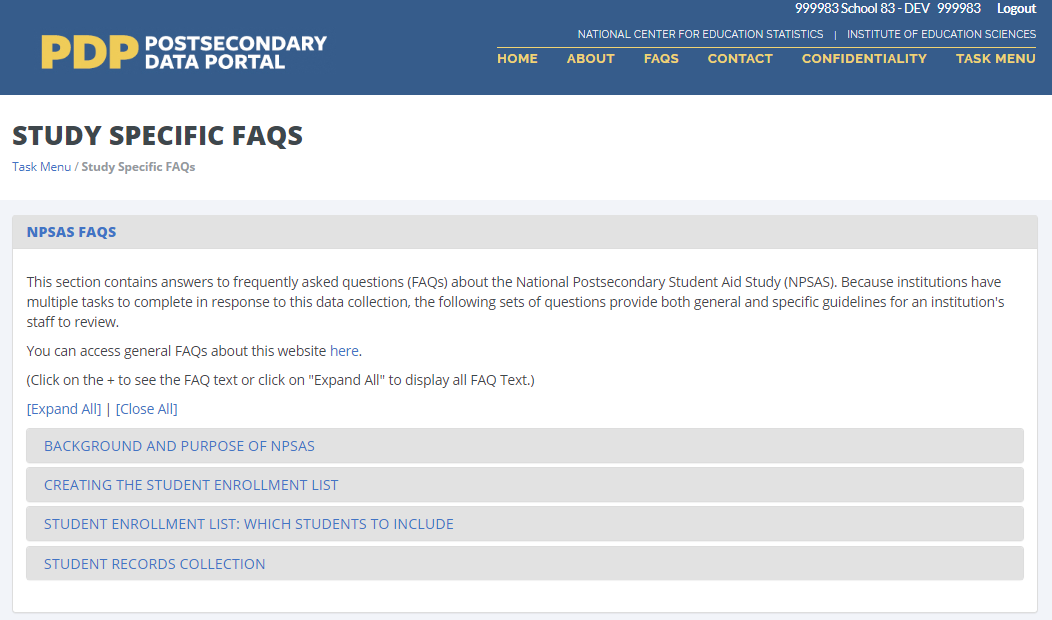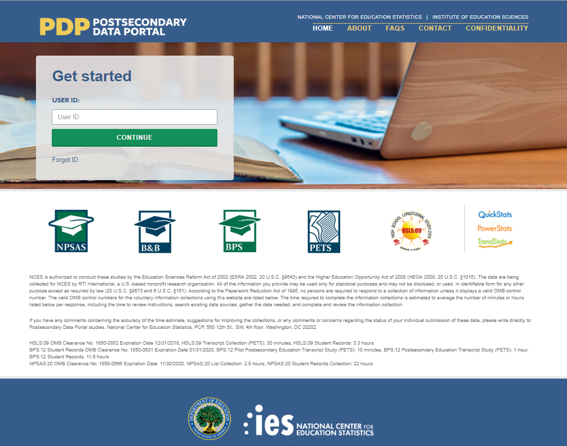 Your participation in the National Postsecondary Student Aid Study, or NPSAS, is important. NPSAS is the primary data source used to understand the effectiveness of federal student financial aid programs and to make decisions that affect students, their families, and the institutions they attend. As an institution participating in the NPSAS:24 field test, you will be expected to complete several steps over the 2022-23 academic year. You will complete these steps through the Postsecondary Data Portal, or PDP, website. The PDP website is the data collection website for all NCES institution-based postsecondary sample surveys. |