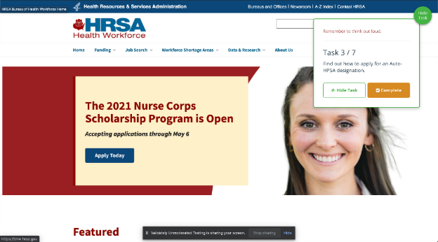 Thank you for participating in HRSA’s Bureau of Health Workforce (BHW) website study.