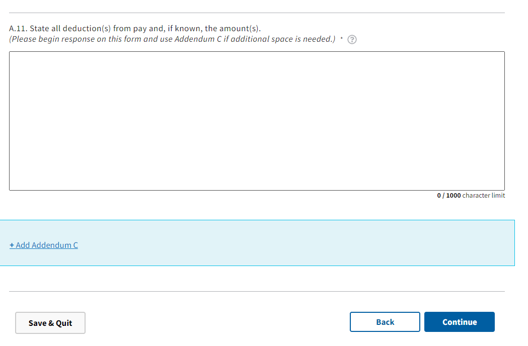 Figure 14: Form Section C Place of Employment Information cont.