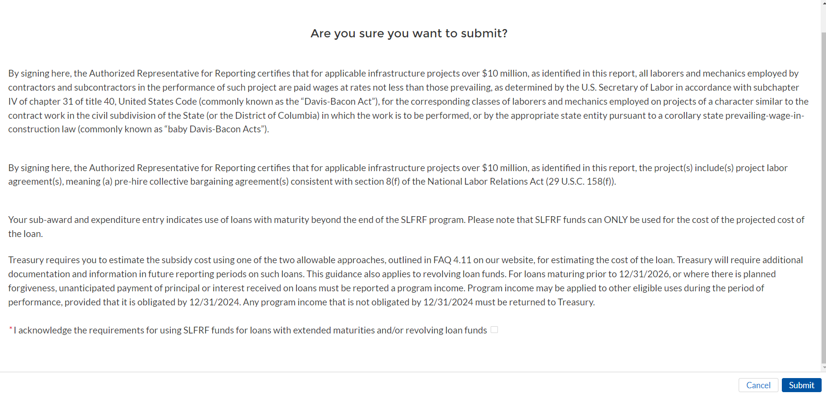 If you have any questions about the SLFRF program’s reporting requirements, please contact us by email to SLFRP@treasury.gov.