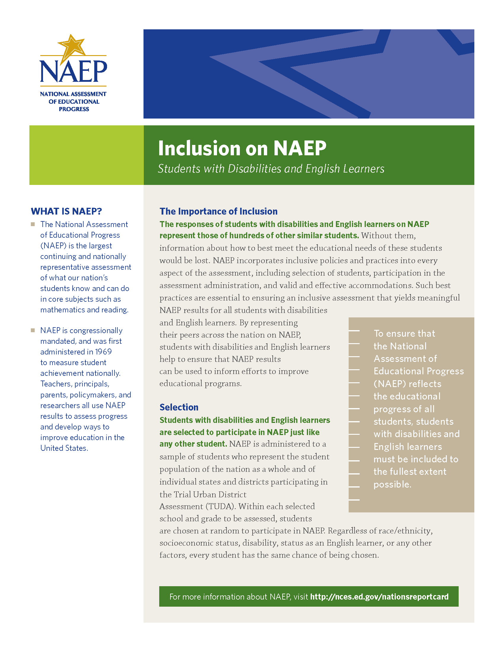 Inclusion on NAEP Fact Sheet 105