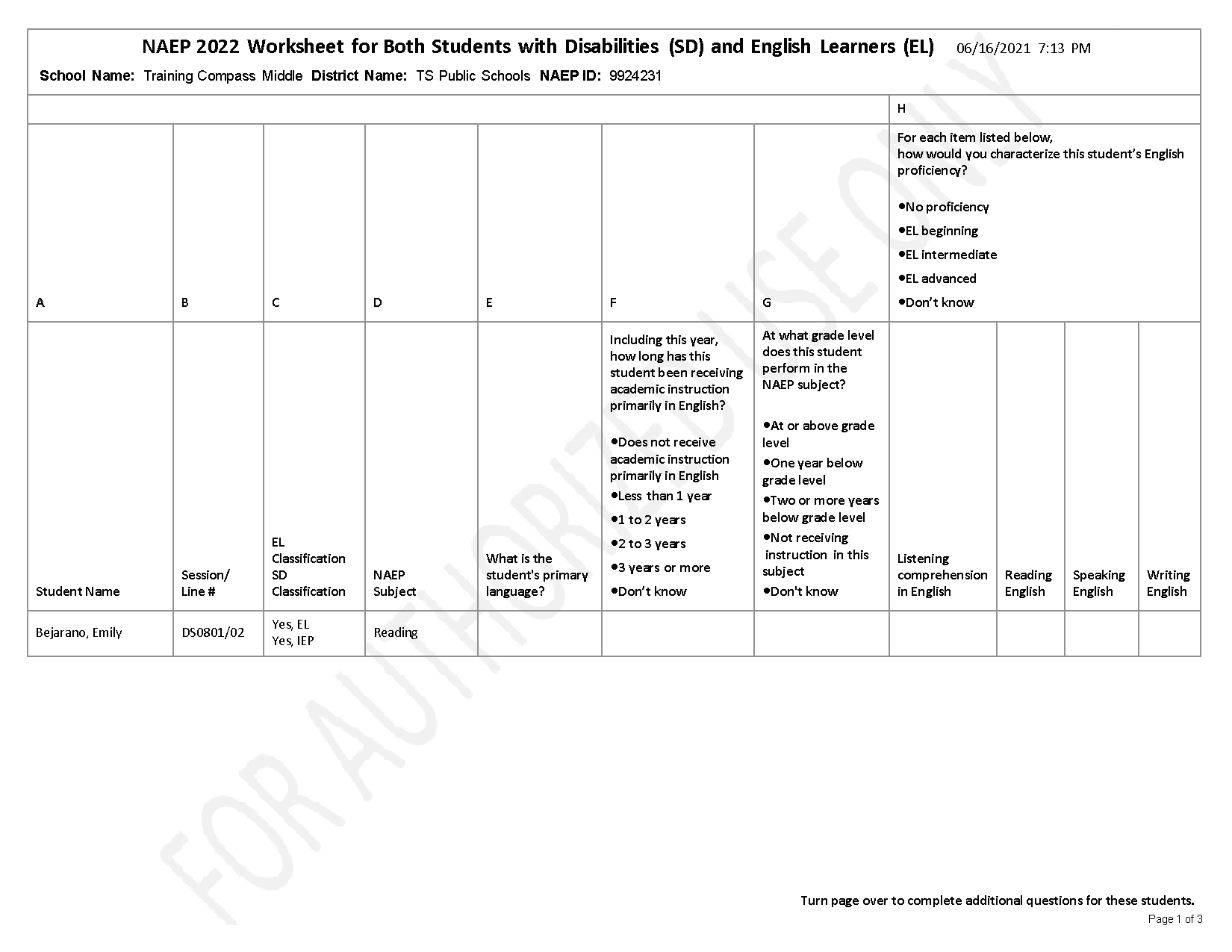Review and Verify List of Students Selected for NAEP - NEW 15