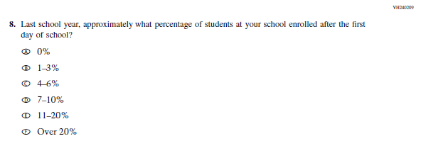 The stem of this item was revised from "when your school was closed last school year" to "for last school year" to remove references to school closures. |
