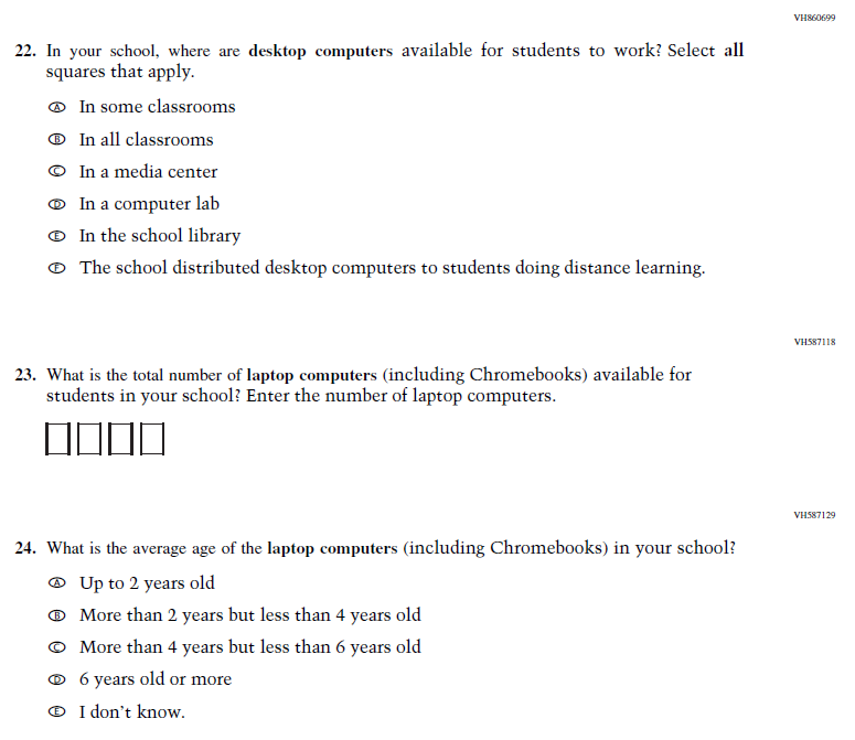 The stem of this item was revised from "when your school was closed last school year" to "for last school year" to remove references to school closures. |