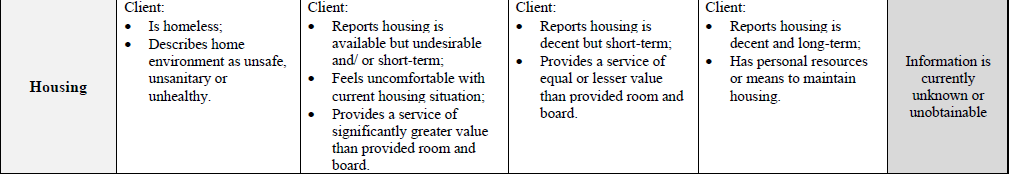 All completed data points should be equal to the total number of clients, or in some cases, can be higher or lesser than the total count. Please refer to the table below to make sure your counts match ORR’s guidelines. Please reach out to the grant Project Officer if there will be discrepancies in your data due to missing information in your records.