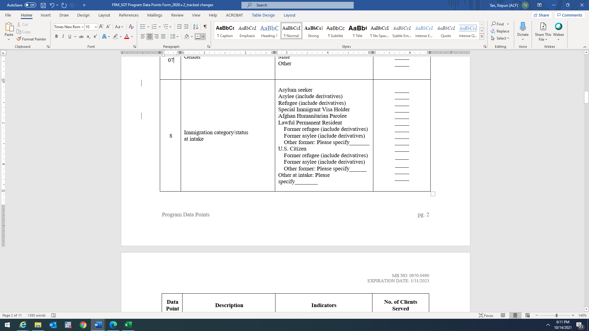 Indicate the number of new and continuing clients, primary and secondary, who fall into each of the immigration categories/statuses at intake. Indicate the latest (most recent) category/status for each client at intake. For example, a refugee generally becomes a lawful permanent resident (LPR) after one year and would be listed as an LPR if he or she were an LPR at intake. Also, indicate the former immigration category(ies)/status(es) for clients who are Lawful Permanent Residents and U.S. Citizens at intake. These counts should be unduplicated.