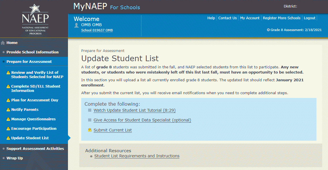 The list will help NAEP identify any students who were not included on the original list submitted in the fall of 2020.