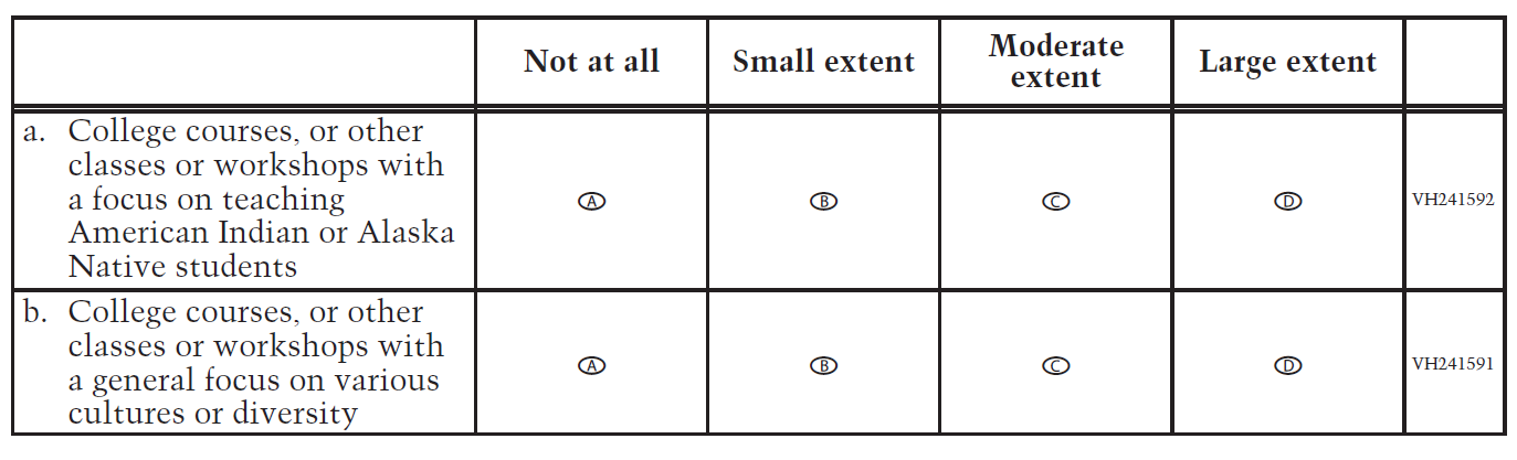 Alaska Native education, while others are intended for broader use. Select one circle in