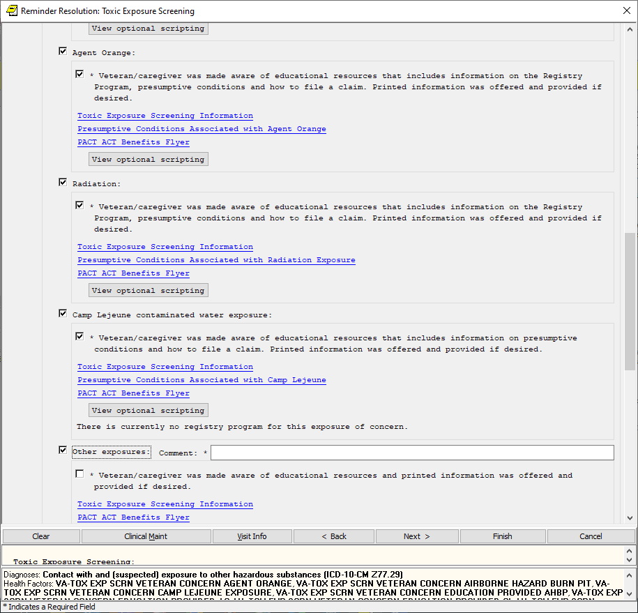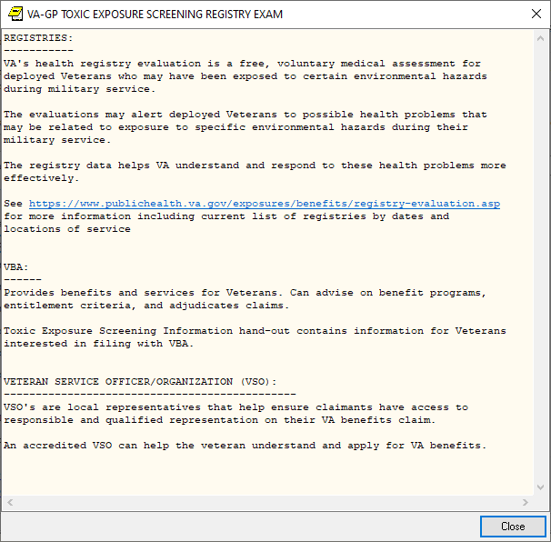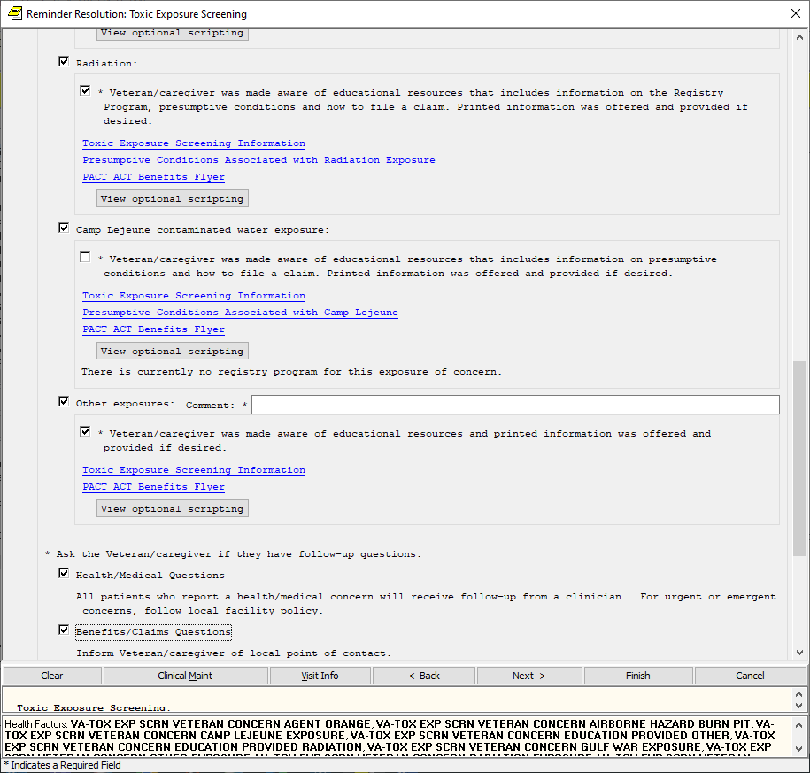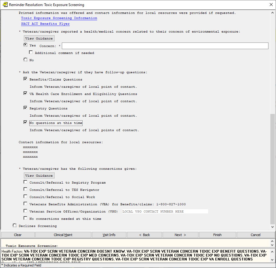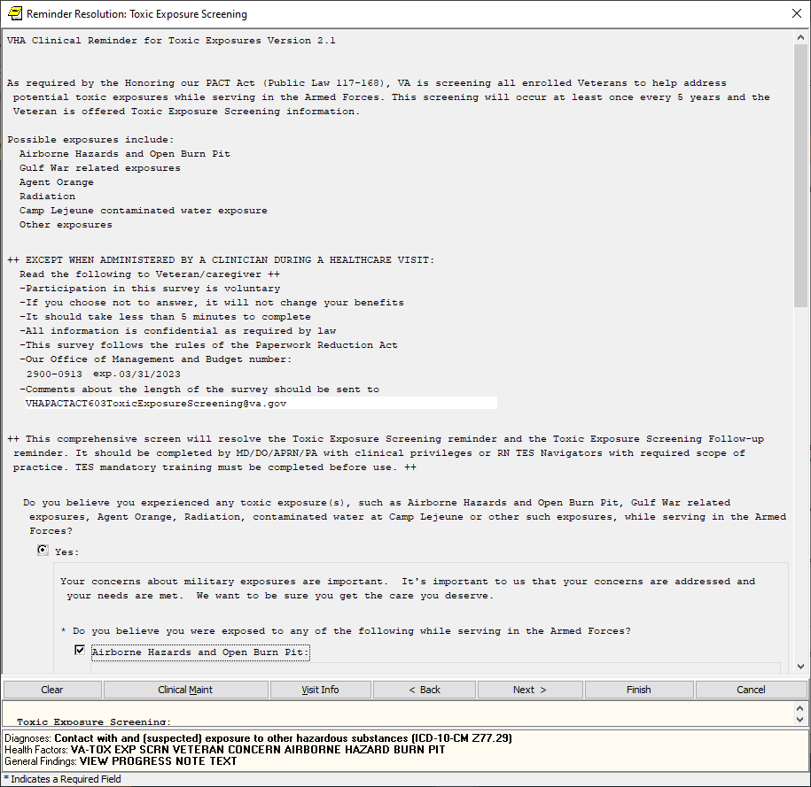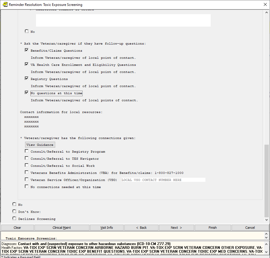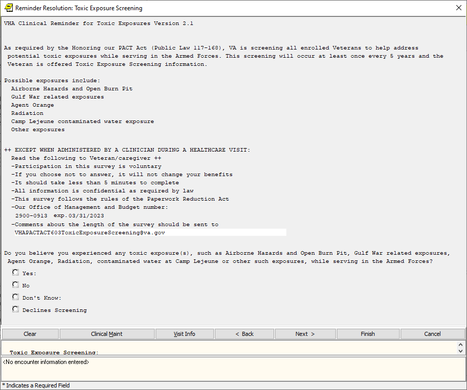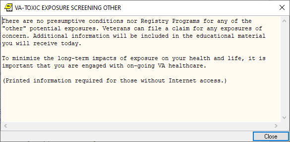 If the screen is completed by a user that is not a PA/APRN/MD/DO and the screen response is YES or if the screen response is DON’T KNOW and the Veteran has any questions, the follow up reminder will come due.