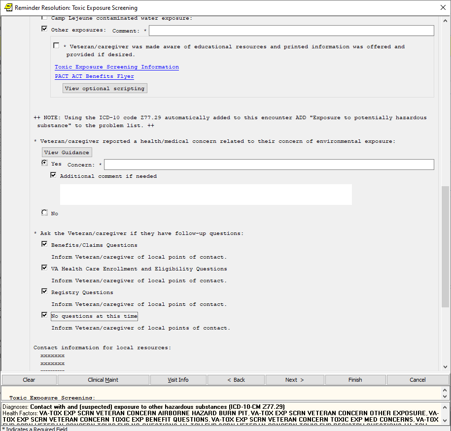 If triggered by an exposure concern on the screen (ICD code is added to encounter and message displays reminding provider to add to problem list):