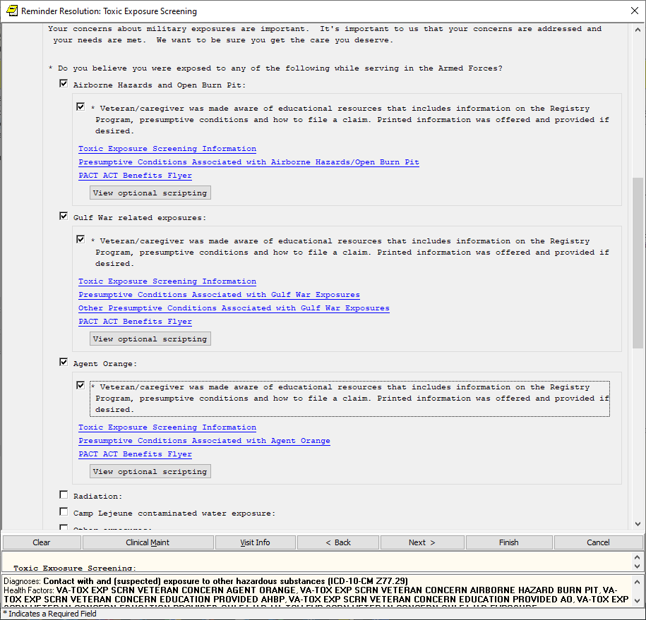 If the screen is completed by a user that is not a PA/APRN/MD/DO and the screen response is YES or if the screen response is DON’T KNOW and the Veteran has any questions, the follow up reminder will come due.